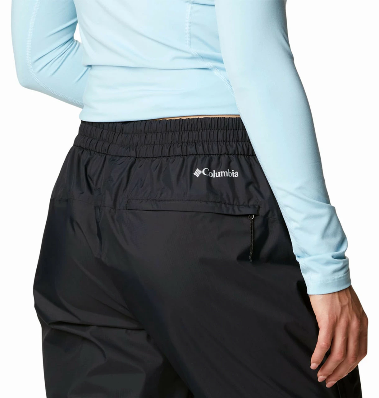 Zippered back pocket lets you stow objects out of the rain. Plus, the pants pack into a back pocket.