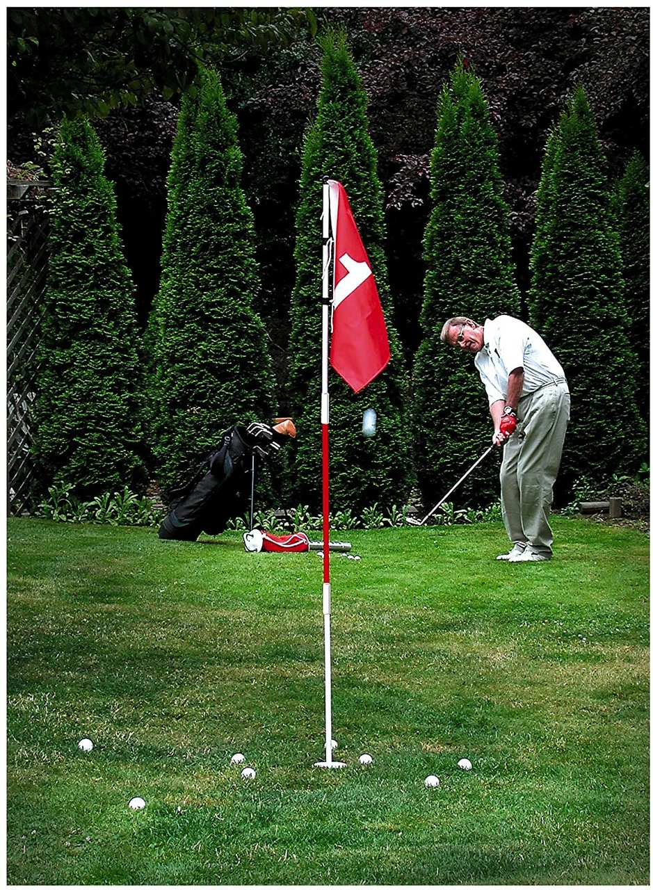 The Backyard Flagstick Steel Pole and Golf Cup from ProActive Sports is the closest thing to having your own green in your backyard. The 3-section steel pole sets up or tears down in just minutes and can be used with or without the cup.